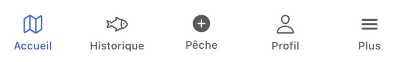 - Pour déclarer vos captures, appuyer donc sur le sigle « pêche » en bas de l’écran et démarrer votre session de pêche.